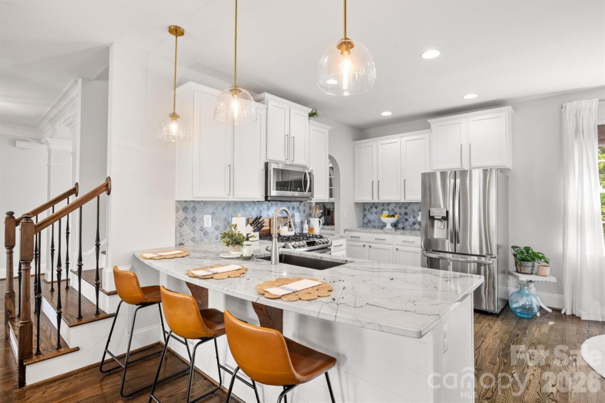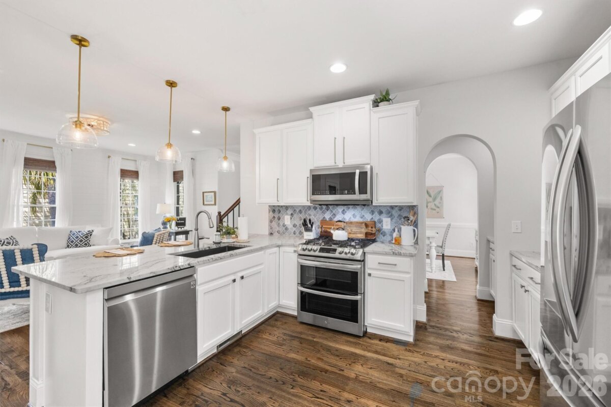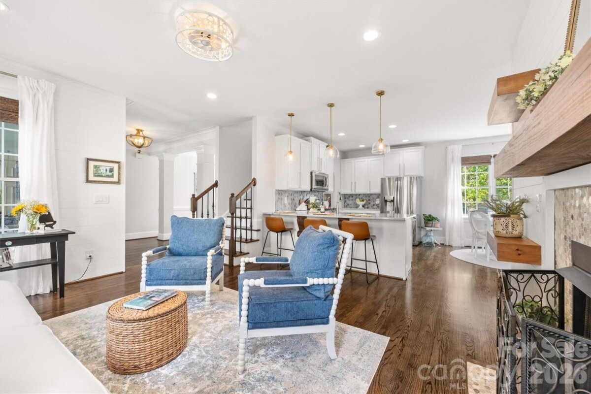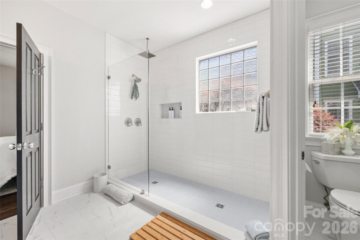 Prime location in the heart of Baxter Village Town Center—step out of your front door and just around the corner to Market Street for shops, dining, YMCA, parks, an elementary school, and a public library. This stunning Charleston-style 4 (with optional 5) bedroom home is move-in ready and filled with natural light. The open main level features hardwood floors, a beautifully updated kitchen with quartzite countertops, double gas ovens, stainless appliances, large bar seating, coffee/wine station, breakfast nook, and updated lighting. The main-level primary suite boasts a fully remodeled (2026) spa-like en-suite bath and custom walk-in closet. Upstairs offers three spacious bedrooms with direct bath access, plus a screened porch perfect for relaxing. The third floor adds flexible space for a bonus room, office, or guest suite. Enjoy outdoor living with a low-maintenance brick patio, fenced yard, firepit, and gas grill. Recent upgrades include new 3-ton split HVAC system with Gas furnace (Dec 2024), tankless water heater, ring cameras, landscape lighting, irrigation, plantation shutters and custom blinds on first level, a large garage with epoxy flooring, 200 sq ft of overhead storage area with stair access, and a JuiceBox electric vehicle charging port. All set in Baxter Village’s sought-after community known for its tree-lined streets, front porch living, and unmatched walkability with pools, trails, tennis courts, and year-round events. Fort Mill Schools, verify assignments with FMSD due to freezes. Convenient to I-77, Kingsley, Greenway & more!