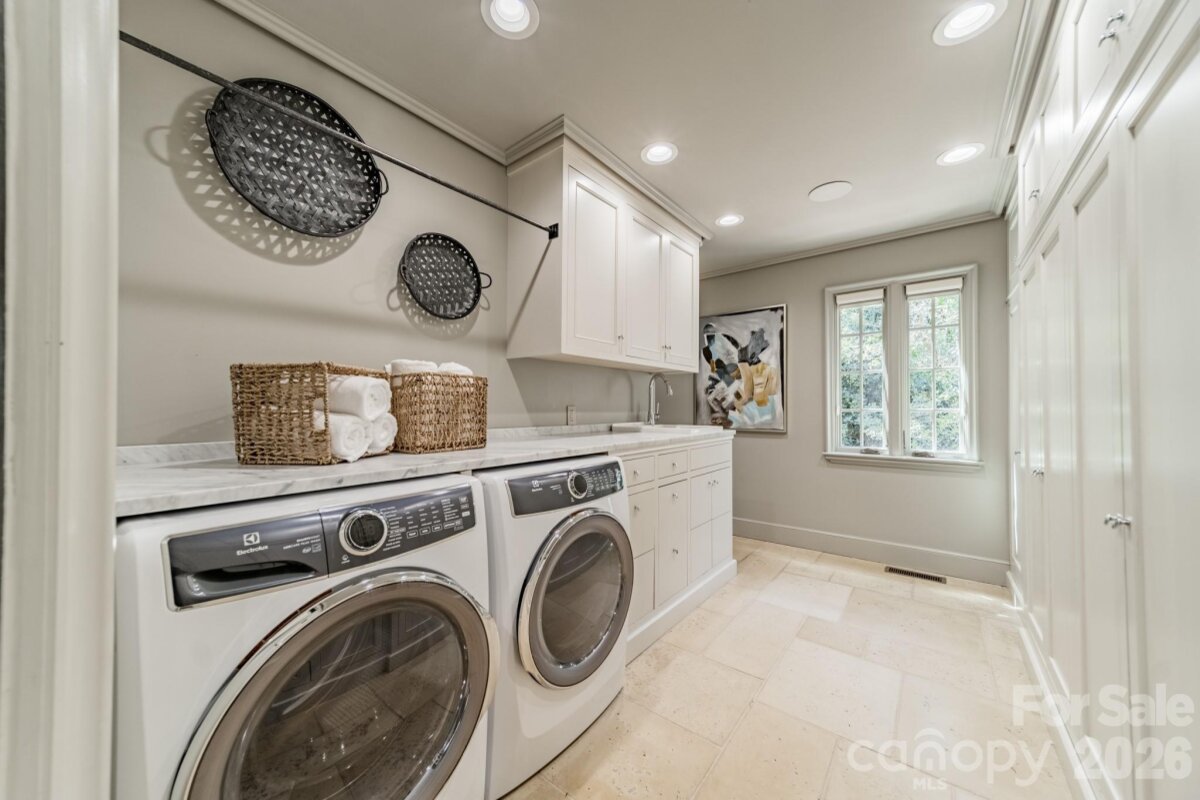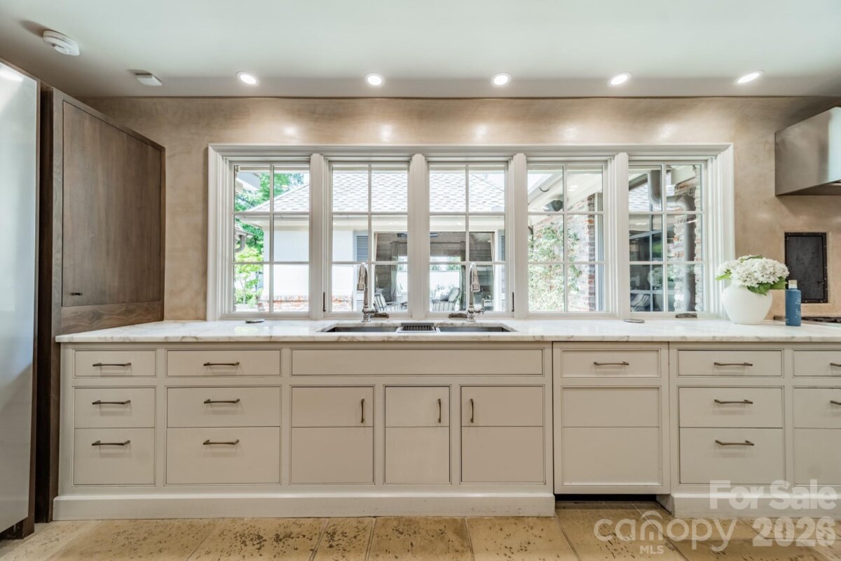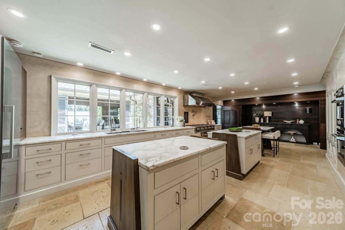 Nestled at the end of a quiet Myers Park cul-de-sac, this meticulously renovated estate sets a new standard for legacy living. Three Carrara Gold marble islands anchor a chef's kitchen outfitted with a 10-burner BlueStar range, standalone Miele refrigerator and freezer, and dual dishwashers. Floor-to-ceiling windows dissolve the line between interior and exterior, spilling onto a covered pavilion with roll-down screens, infrared heaters, and a saltwater pool resurfaced in 2024. The main-level owner's suite delivers spa-caliber finishes — re-tiled Carrara shower, heated floors, and towel warmers. Five new HVAC units, a 38 kW whole-home generator, full water filtration, and Control 4 automation leave nothing to the imagination. Bespoke ironwork, curated lighting, and architectural detailing are at every turn. *See attached Property Feature Sheet for a complete list of capital improvements.*