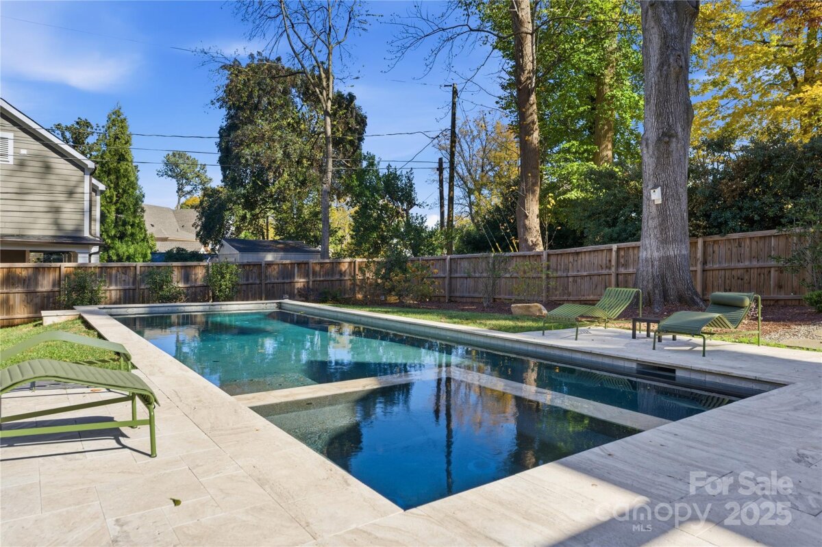 Timeless Myers Park Home Showcasing Classic Elegance and Modern Luxury Set on a deep, oversized lot in one of Charlotte’s most iconic neighborhoods, this beautifully renovated two-story residence blends timeless design with modern sophistication. The gourmet chef’s kitchen showcases custom maple cabinetry, MetroQuartz countertops, an expansive island, ROHL faucet, farmhouse cast-iron sink, and premium appliances. Step out to a brand-new luxury composite deck, perfect for morning coffee or sunset views. Offering a spacious primary suite upstairs and a beautifully appointed en-suite on the main level, the home provides exceptional flexibility for guests, a private office, or multi-generational living. The upstairs primary captures stunning city skyline views, while custom cedar-lined closets throughout enhance both beauty and functionality. The finished walk-out basement with custom millwork, a secure vault, and a private fitness area with a sauna that opens to a stunning backyard, complete with a spectacular backyard retreat featuring a sleek pool with silver marble decking a true showpiece that reflects the home’s uncompromising quality. Just minutes from Freedom Park, shops, and dining, this home delivers the complete Myers Park lifestyle where craftsmanship, comfort, and location meet in perfect harmony.