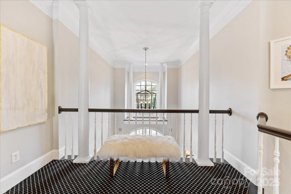 Stately Piper Glen home perfectly situated on the 3rd Green with sweeping views of the golf course as well as mature landscaping for privacy. This 2 story home has been beautifully updated with natural stone countertops in the Kitchen, newer white cabinetry, KitchenAid appliances including a 5 burner gas range, an island prep sink as well as butler’s pantry, walk-in pantry, custom wine bar area & a bright, inviting breakfast nook with banquette seating. The Keeping area centers around a cozy fireplace with stone surround, while custom millwork, designer lighting, & hardwood floors tie the main level together. The Front Office flows into the Family Room with a wall of glass windows that open to a travertine grilling terrace. A Dry bar area is tucked between the Office & Family Room where you can step through French doors from either room onto the covered side veranda. Upstairs, the 4th Bedroom sits apart from the others making it an ideal Guest Suite. Spacious Primary Suite with trey ceiling, 2 walk-in closets & updated bathroom. Bonus Room features a vaulted ceiling & floating built-in media cabinet. Don’t miss the permanent walk-up attic which makes holiday storage a breeze. Living in Piper Glen not only provides convenience to TPC Piper Glen, if you choose to join, the home is also just minutes from shopping, restaurants and the McAlpine Greenway.